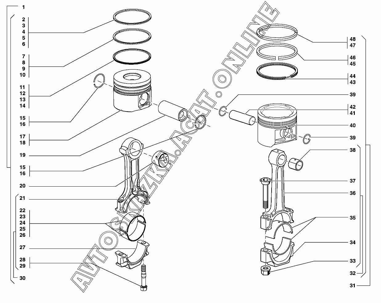 Поршень и шатун УАЗ 31519 (УАЗ "Хантер" (-31512-010, -31514-012, -31519-017, 315195-030, -315195-036, -315148-095, -315148-195, -315194-010))