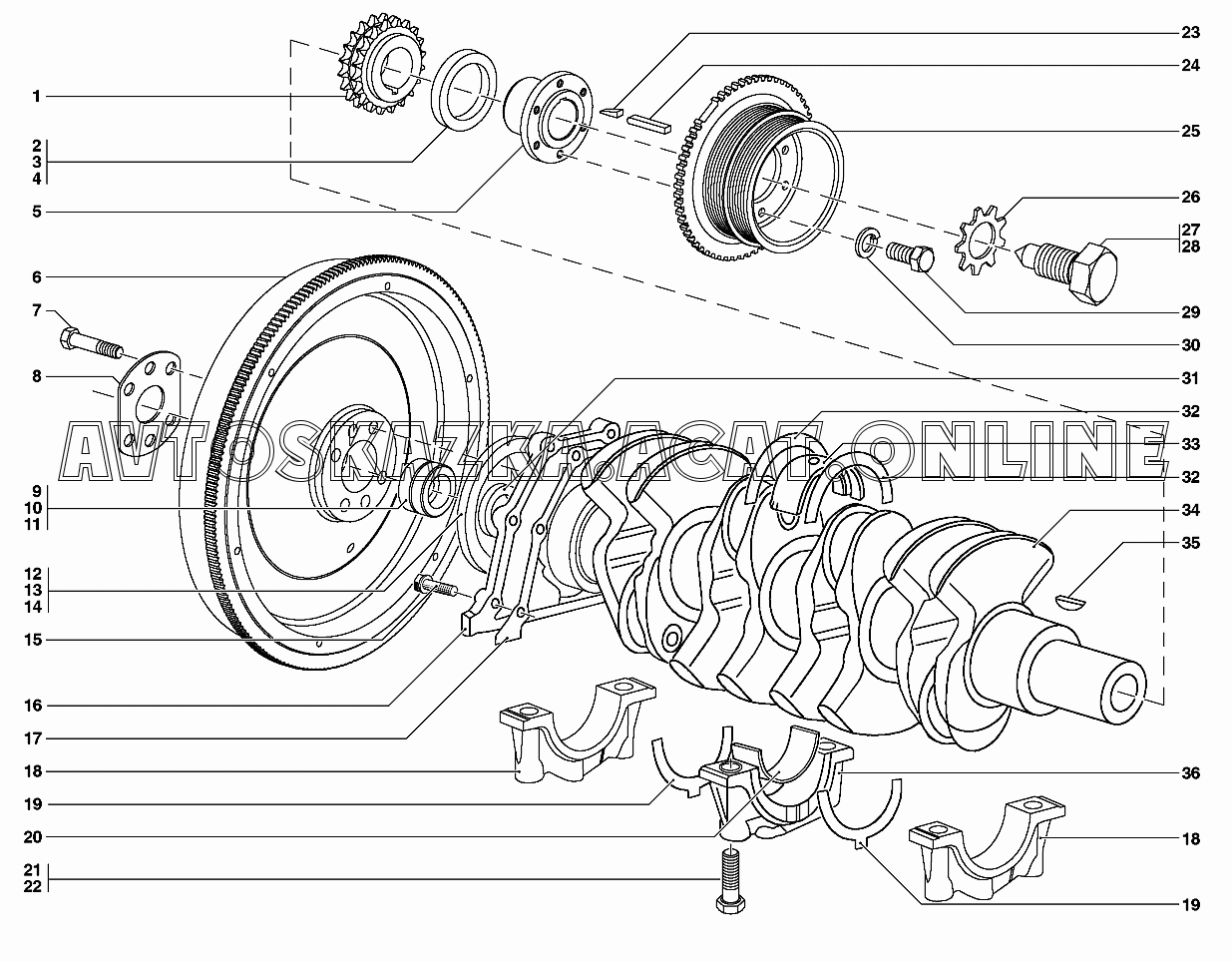 Вал коленчатый и маховик УАЗ 31519 (УАЗ "Хантер" (-31512-010, -31514-012, -31519-017, 315195-030, -315195-036, -315148-095, -315148-195, -315194-010))