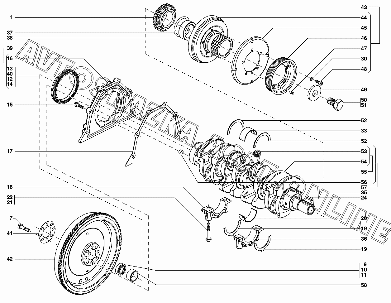 Вал коленчатый и маховик УАЗ 31519 (УАЗ "Хантер" (-31512-010, -31514-012, -31519-017, 315195-030, -315195-036, -315148-095, -315148-195, -315194-010))