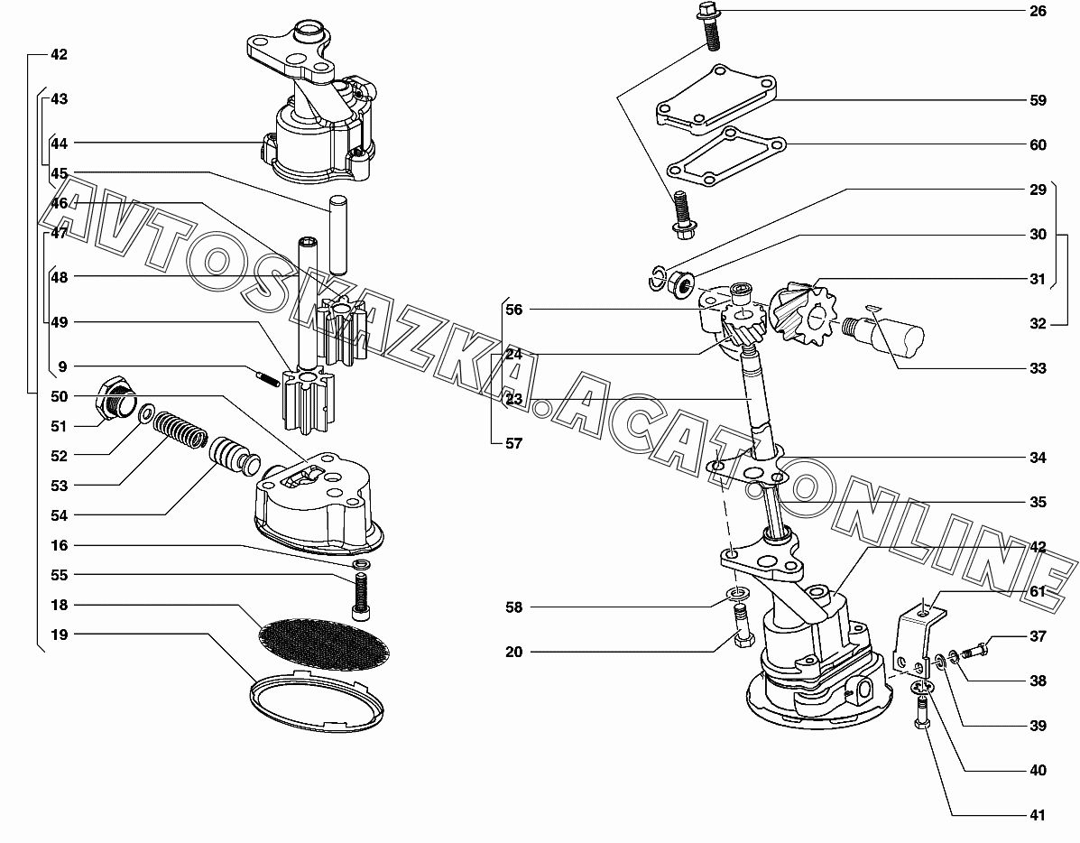 Маслоприемник и масляный насос УАЗ 31519 (УАЗ "Хантер" (-31512-010, -31514-012, -31519-017, 315195-030, -315195-036, -315148-095, -315148-195, -315194-010))