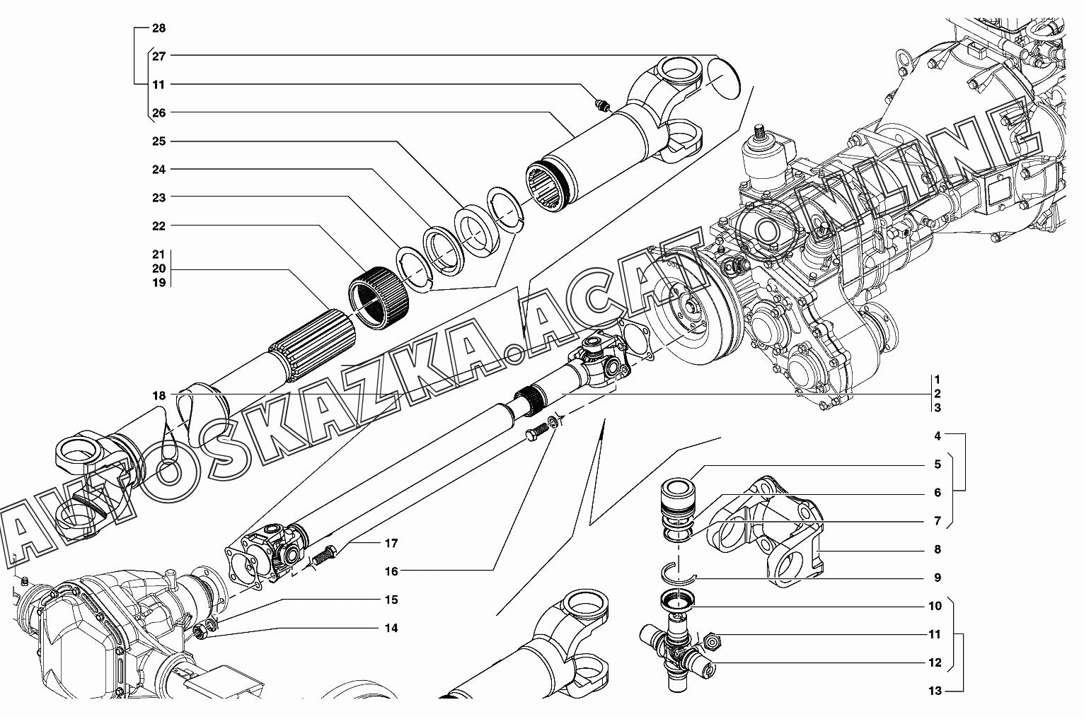 | Название детали: | Крестовина карданного вала с подшипниками и уплотнителями в сборе (комплект для запасных частей) |