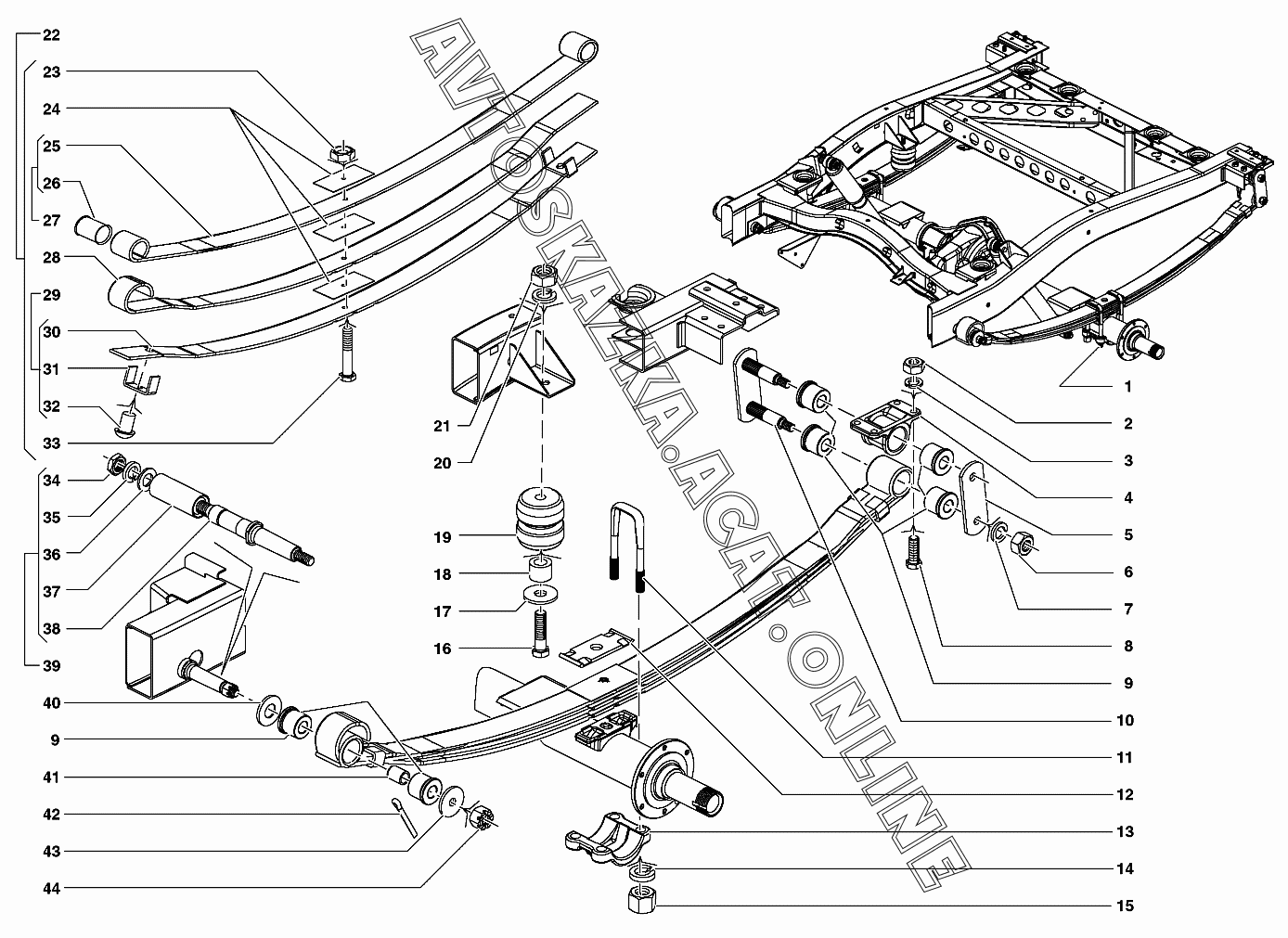 | Название детали: | Ось переднего конца рессоры в сборе |