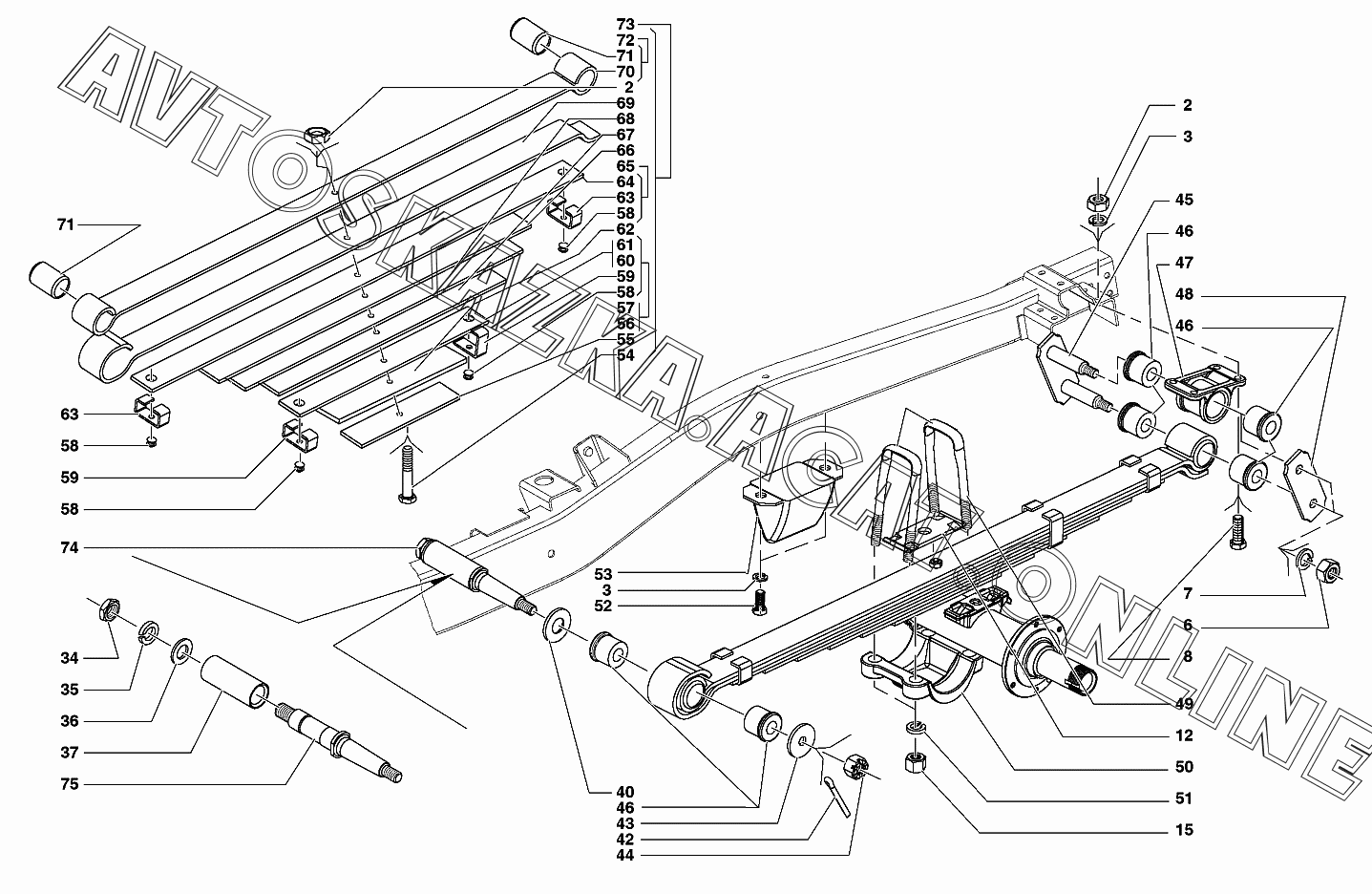 | Название детали: | Ось переднего конца рессоры в сборе |