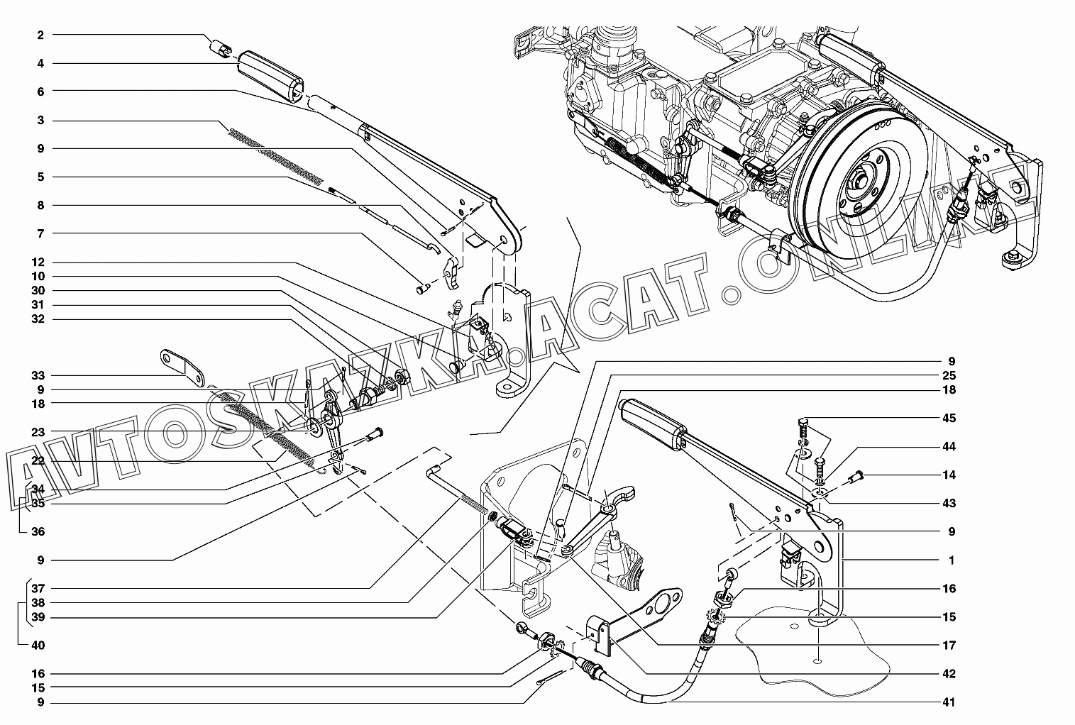Привод механизма управления стояночным тормозом УАЗ 31519 (УАЗ "Хантер" (-31512-010, -31514-012, -31519-017, 315195-030, -315195-036, -315148-095, -315148-195, -315194-010))