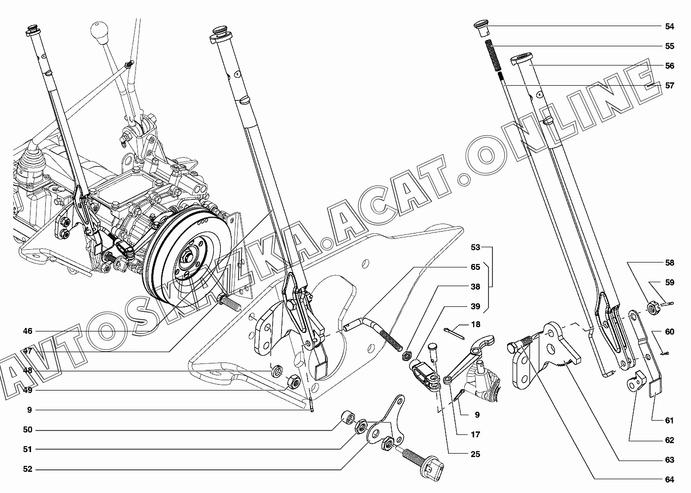 | Название детали: | Тяга собачки рычага стояночного тормоза |