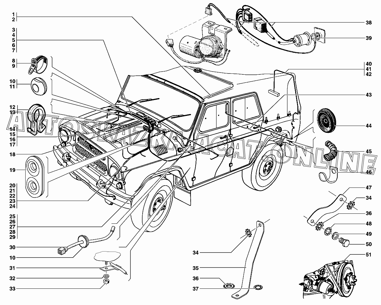 Электропровода УАЗ 31519 (УАЗ "Хантер" (-31512-010, -31514-012, -31519-017, 315195-030, -315195-036, -315148-095, -315148-195, -315194-010))
