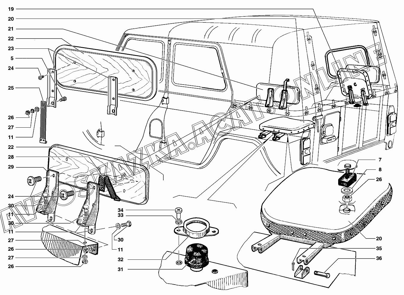 Сиденье откидное УАЗ 31519 (УАЗ "Хантер" (-31512-010, -31514-012, -31519-017, 315195-030, -315195-036, -315148-095, -315148-195, -315194-010))