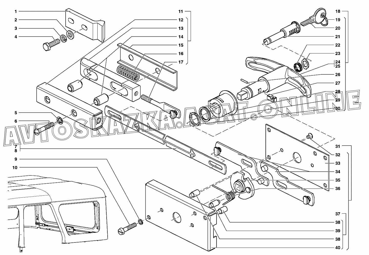 Замок и ручка крышки багажного люка УАЗ 31519 (УАЗ "Хантер" (-31512-010, -31514-012, -31519-017, 315195-030, -315195-036, -315148-095, -315148-195, -315194-010))