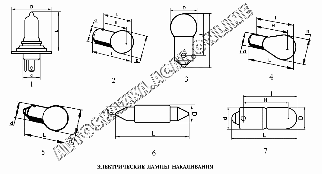 | Название детали: | Лампа электрическая АКГ12-60+55-1 (W=60/55Вт, D=45, d=22, L=60) |