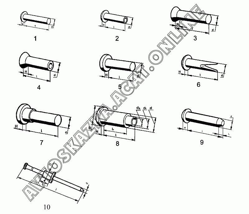 | Название детали: | Заклепка специальная (d=10, D=16, H=6, l=28, l1=5) |