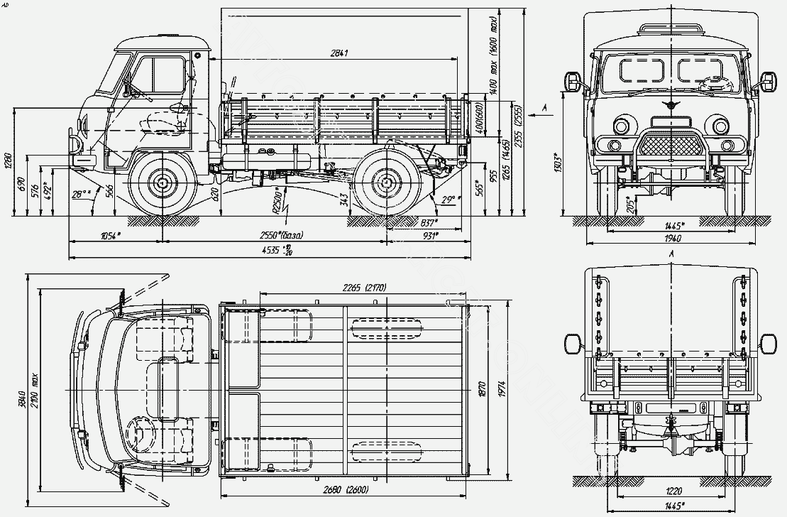 Геометрические размеры автомобиля УАЗ-3303 УАЗ 3962 (39629)
