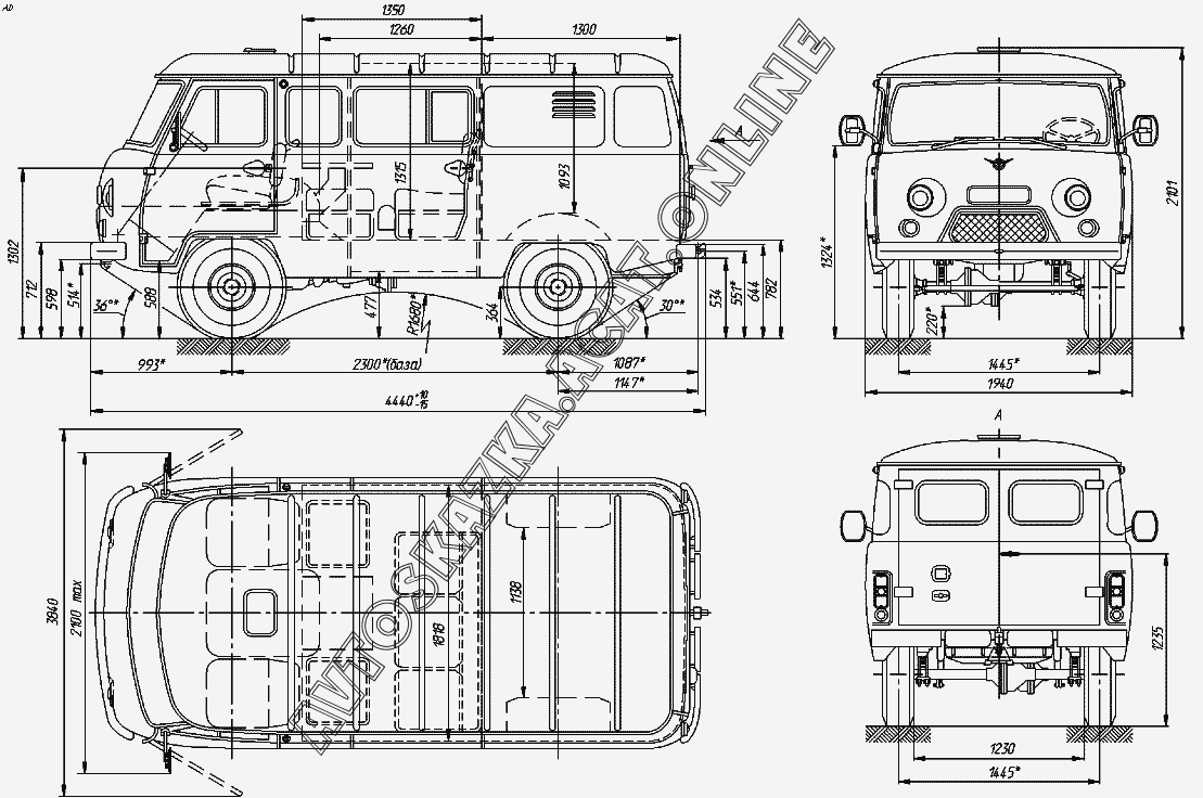 Геометрические размеры автомобиля УАЗ-3909 УАЗ 3962 (39629)