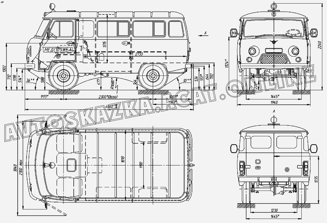 Геометрические размеры автомобиля УАЗ-3962, УАЗ-39629 УАЗ 3962 (39629)