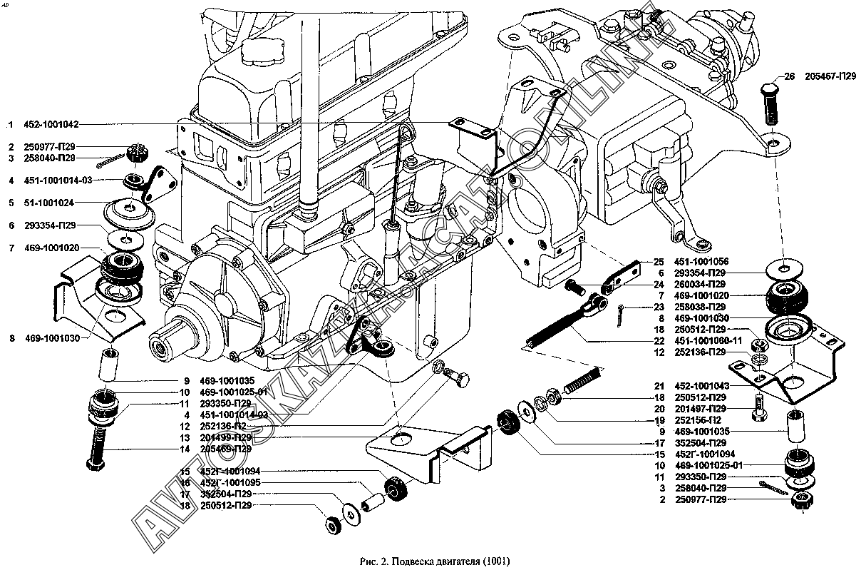 Подвеска двигателя (1001) УАЗ 3962 (39629)