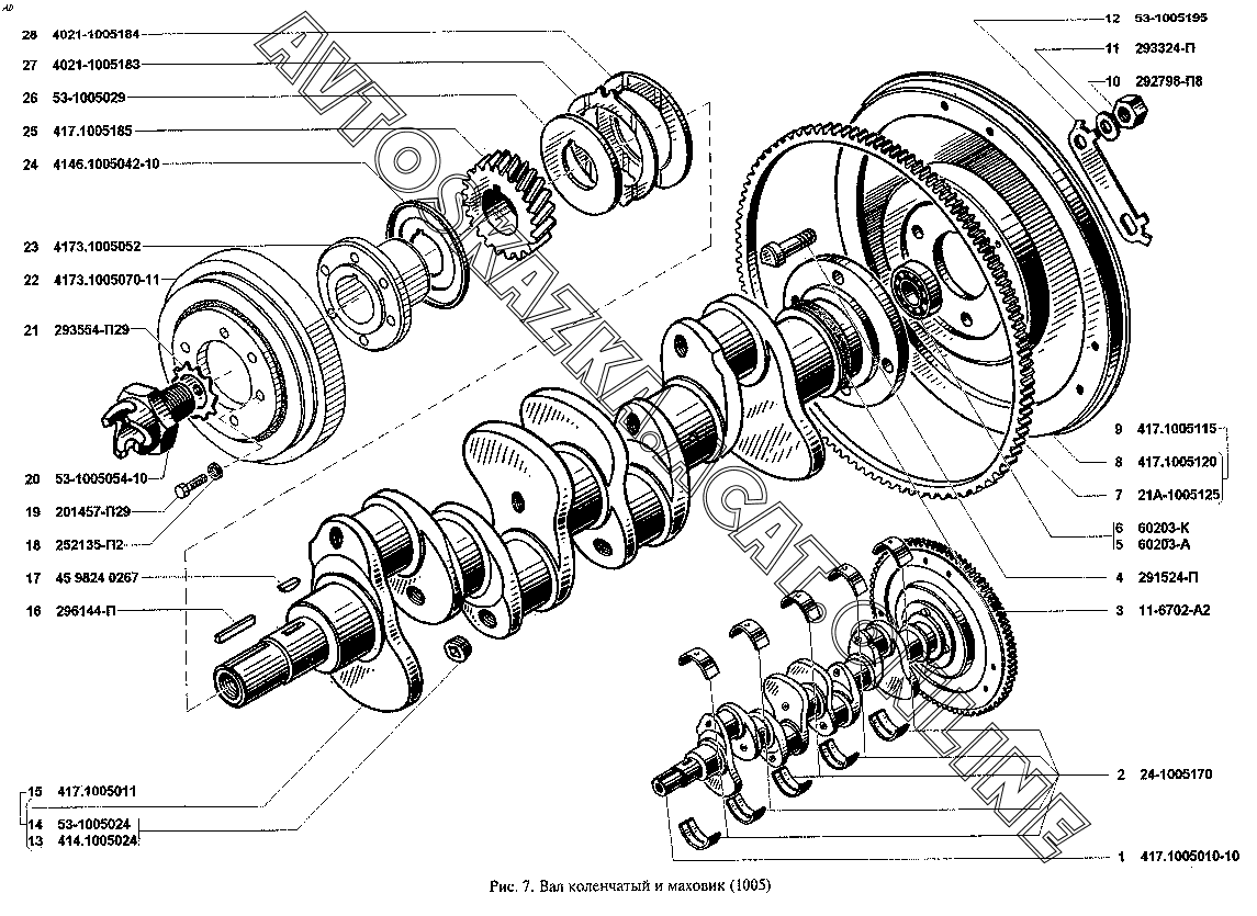 Вал коленчатый и маховик (1005) УАЗ 3962 (39629)