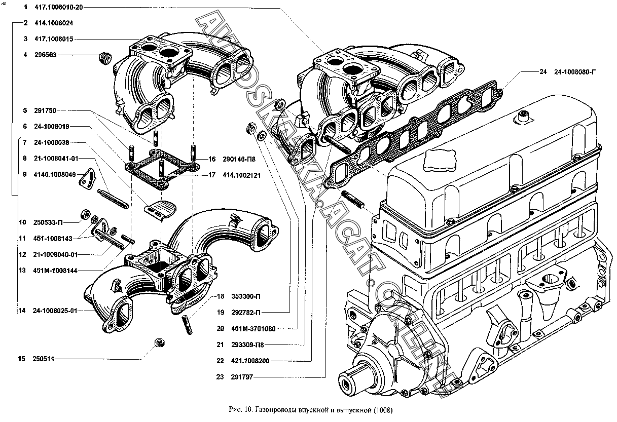 Газопроводы впускной и выпускной (1008) УАЗ 3962 (39629)