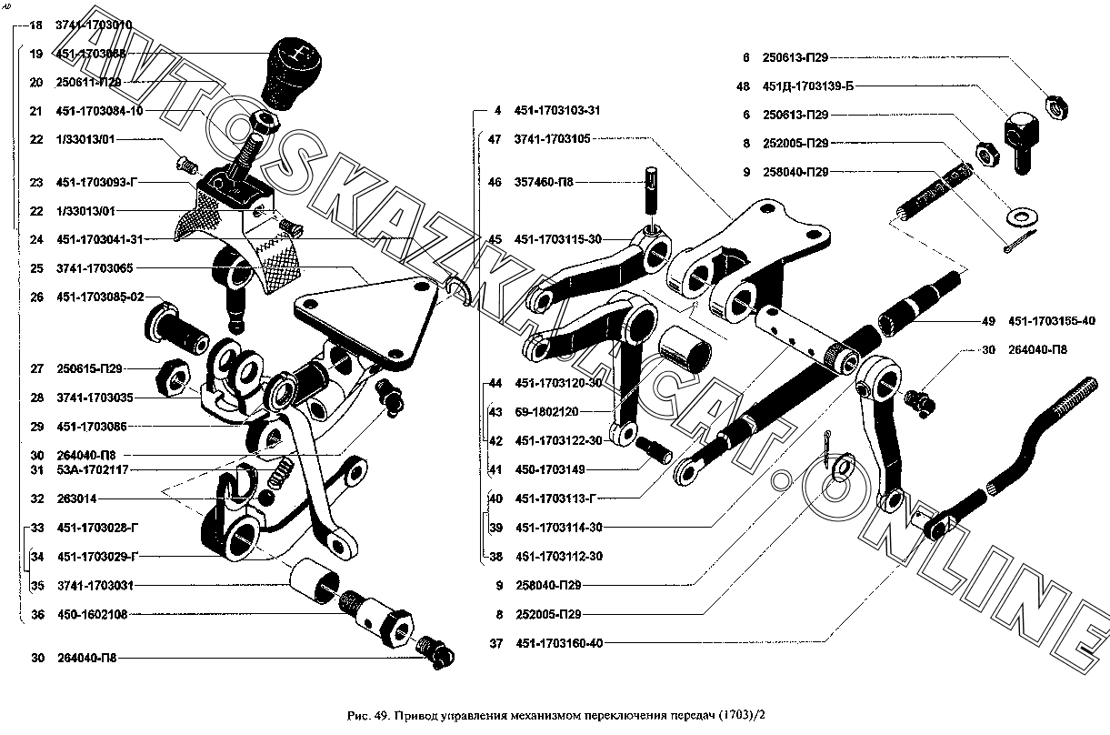 Привод управления механизмом переключения передач (1703)/2 УАЗ 3962 (39629)