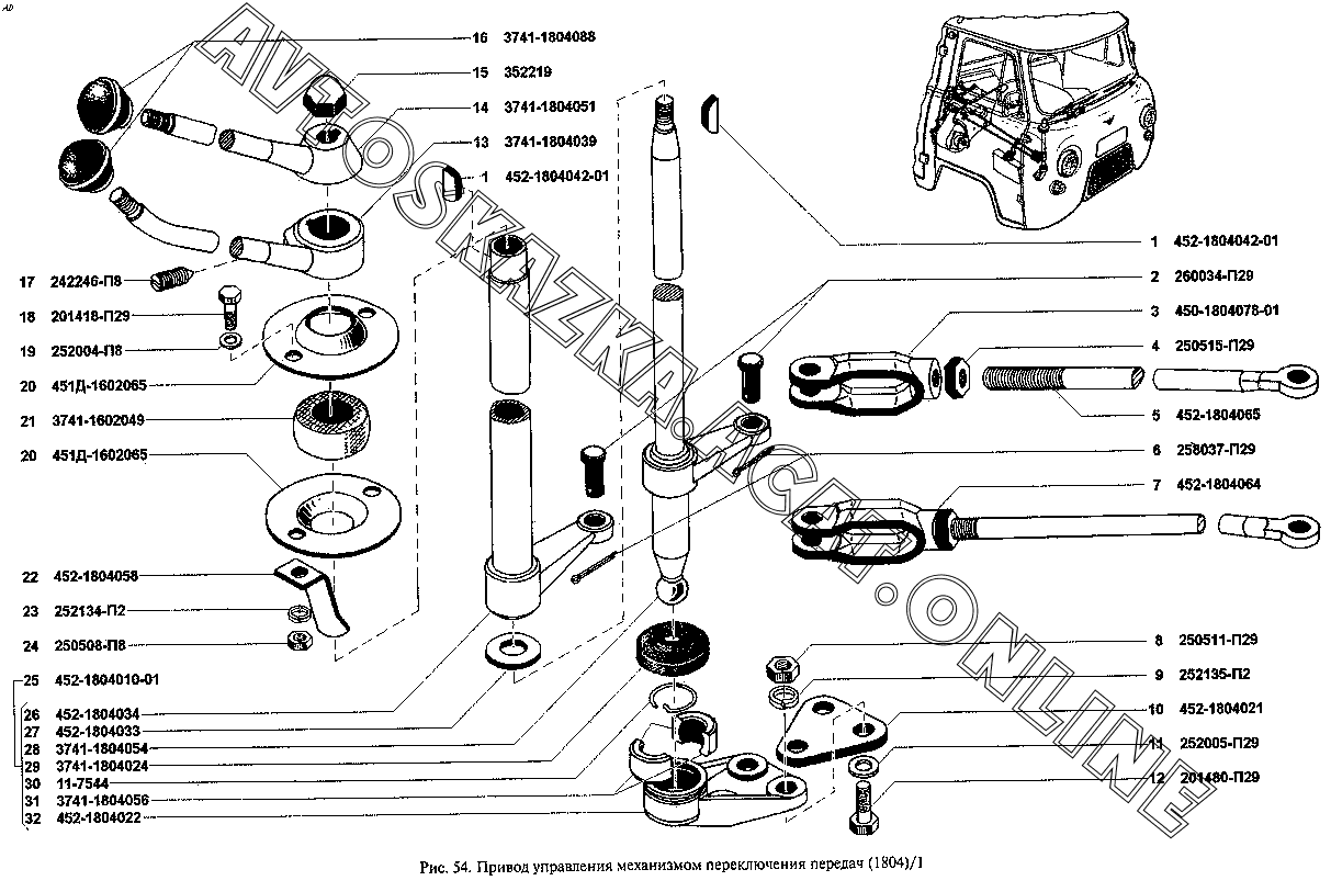 Привод управления механизмом переключения передач (1804)/1 УАЗ 3962 (39629)