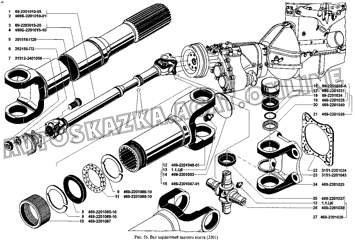 Вал карданный заднего моста (2201) УАЗ 3962 (39629)
