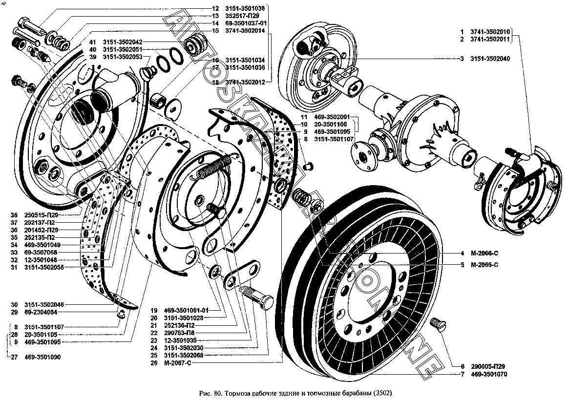 Тормоза рабочие задние и тормозные барабаны (3502) УАЗ 3962 (39629)