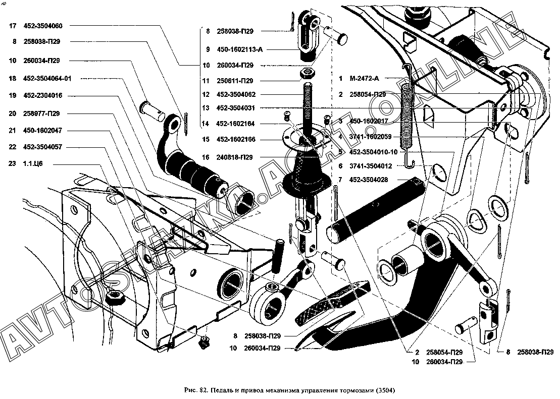Педаль и привод механизма управления тормозами (3504) УАЗ 3962 (39629)