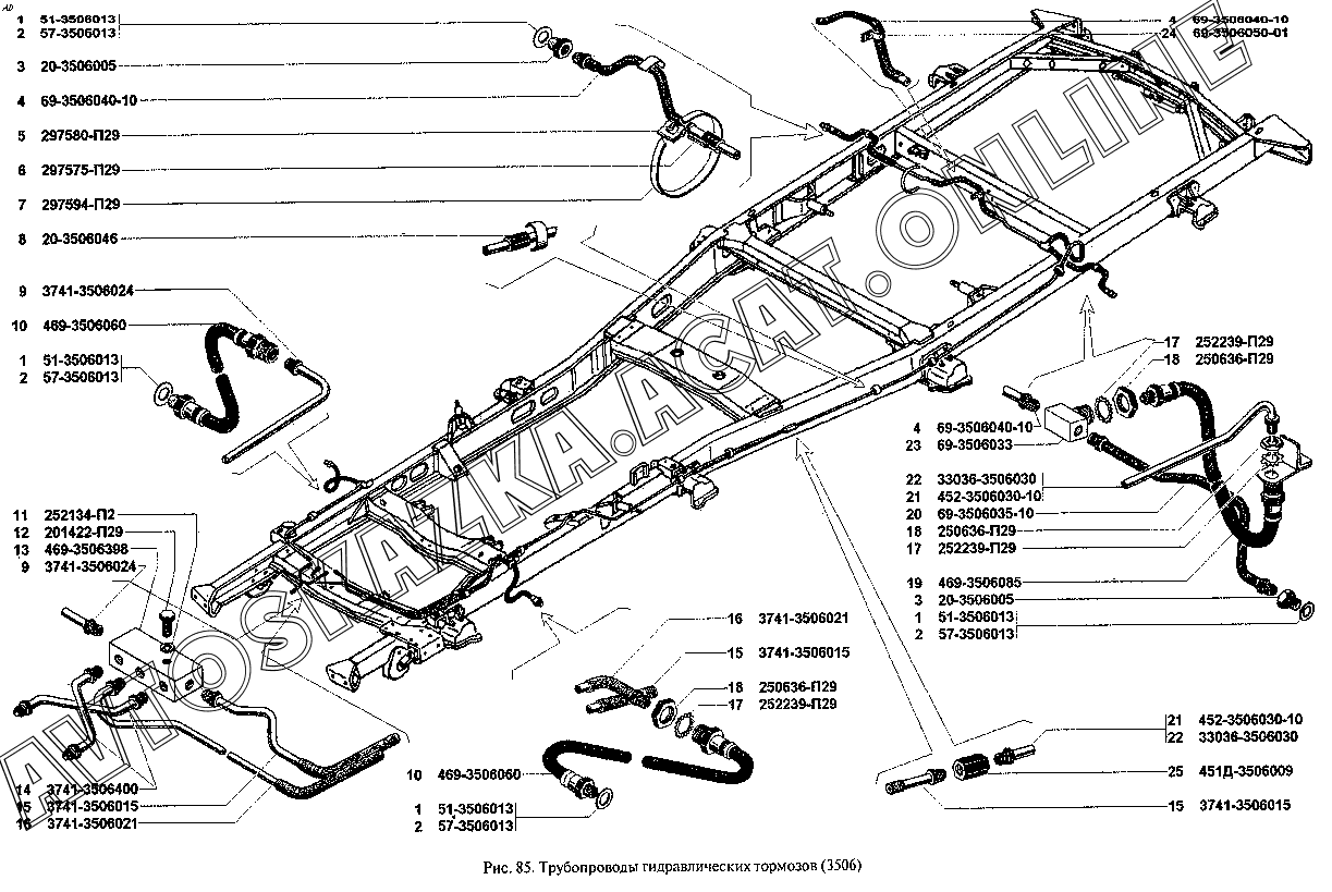 Трубопроводы гидравлических тормозов (3506) УАЗ 3962 (39629)