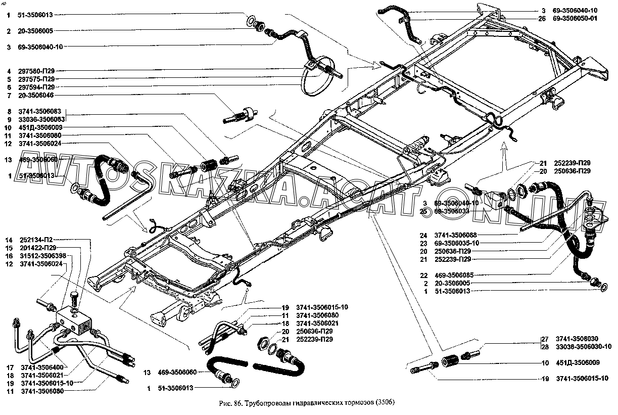 Трубопроводы гидравлических тормозов (3506) УАЗ 3962 (39629)