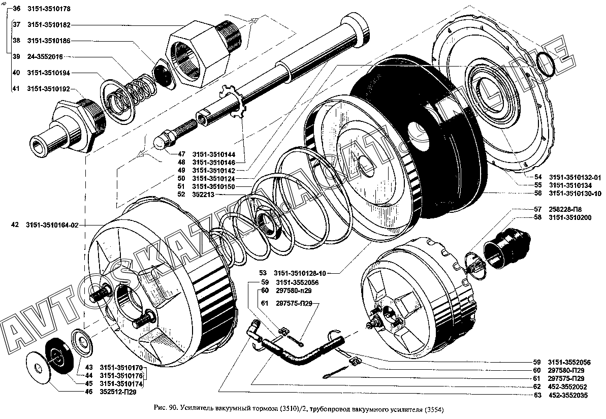Усилитель вакуумный тормоза (3510)/2, трубопровод вакуумного усилителя (3554) УАЗ 3962 (39629)