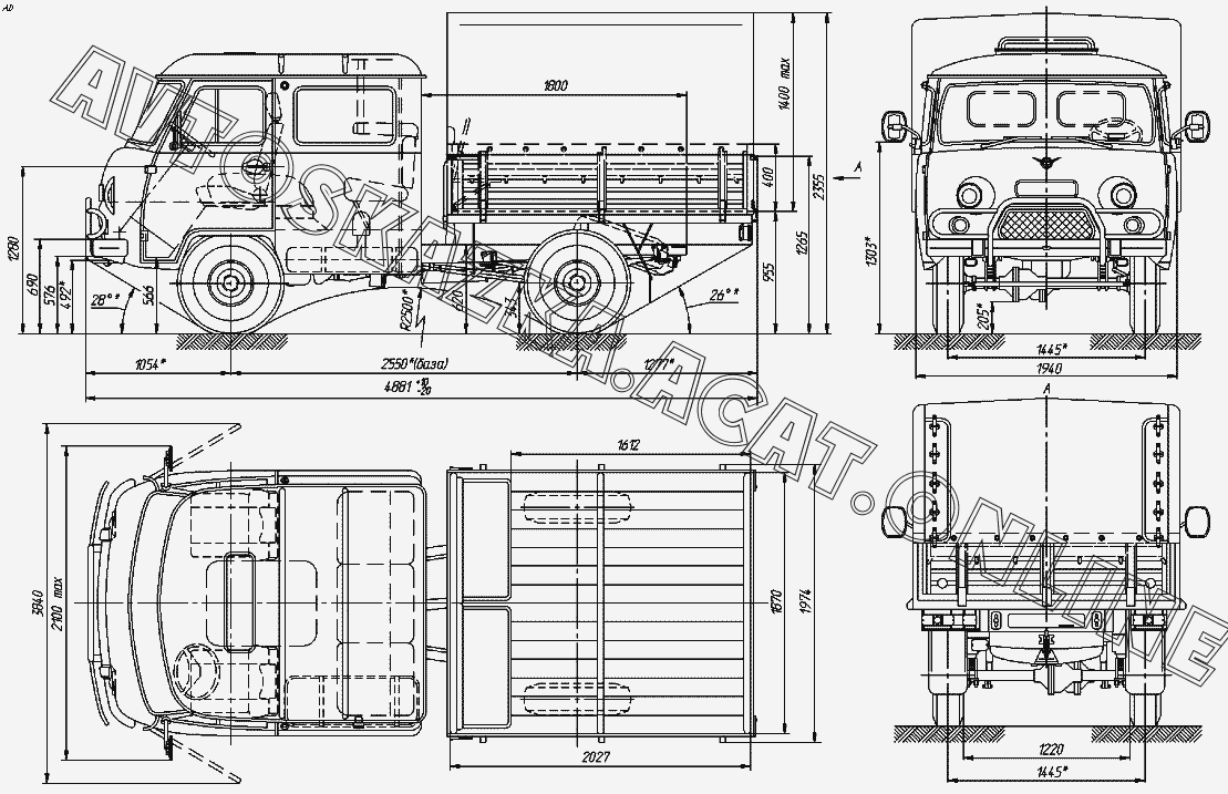 Геометрические размеры автомобиля УАЗ-39094 УАЗ 3909 (39094, 39095, 39099)