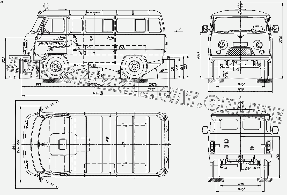 Геометрические размеры автомобиля УАЗ-39625 УАЗ 3909 (39094, 39095, 39099)