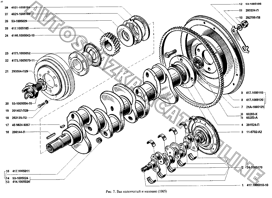 Вал коленчатый и маховик (1005) УАЗ 3909 (39094, 39095, 39099)