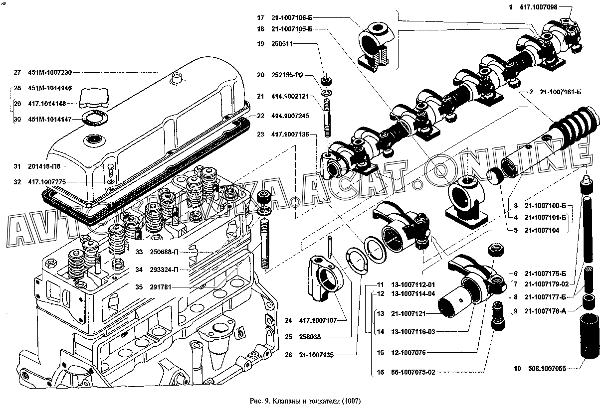 Клапаны и толкатели (1007) УАЗ 3909 (39094, 39095, 39099)