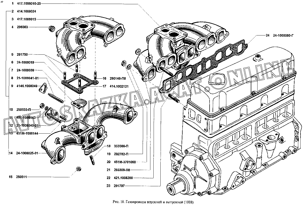 Газопроводы впускной и выпускной (1008) УАЗ 3909 (39094, 39095, 39099)