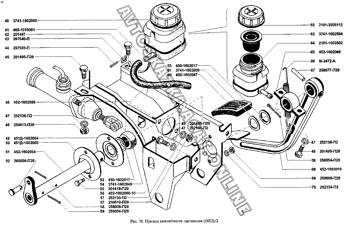 Привод выключения сцепления (1602)/2 УАЗ 3909 (39094, 39095, 39099)