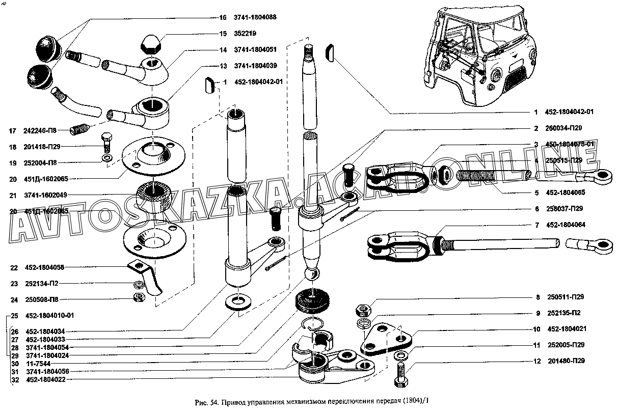 Привод управления механизмом переключения передач (1804)/1 УАЗ 3909 (39094, 39095, 39099)