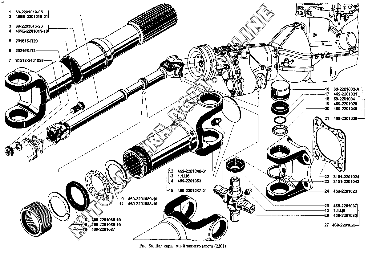 Вал карданный заднего моста (2201) УАЗ 3909 (39094, 39095, 39099)