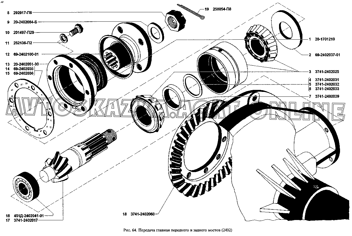 Передача главная переднего и заднего мостов (2402) УАЗ 3909 (39094, 39095, 39099)