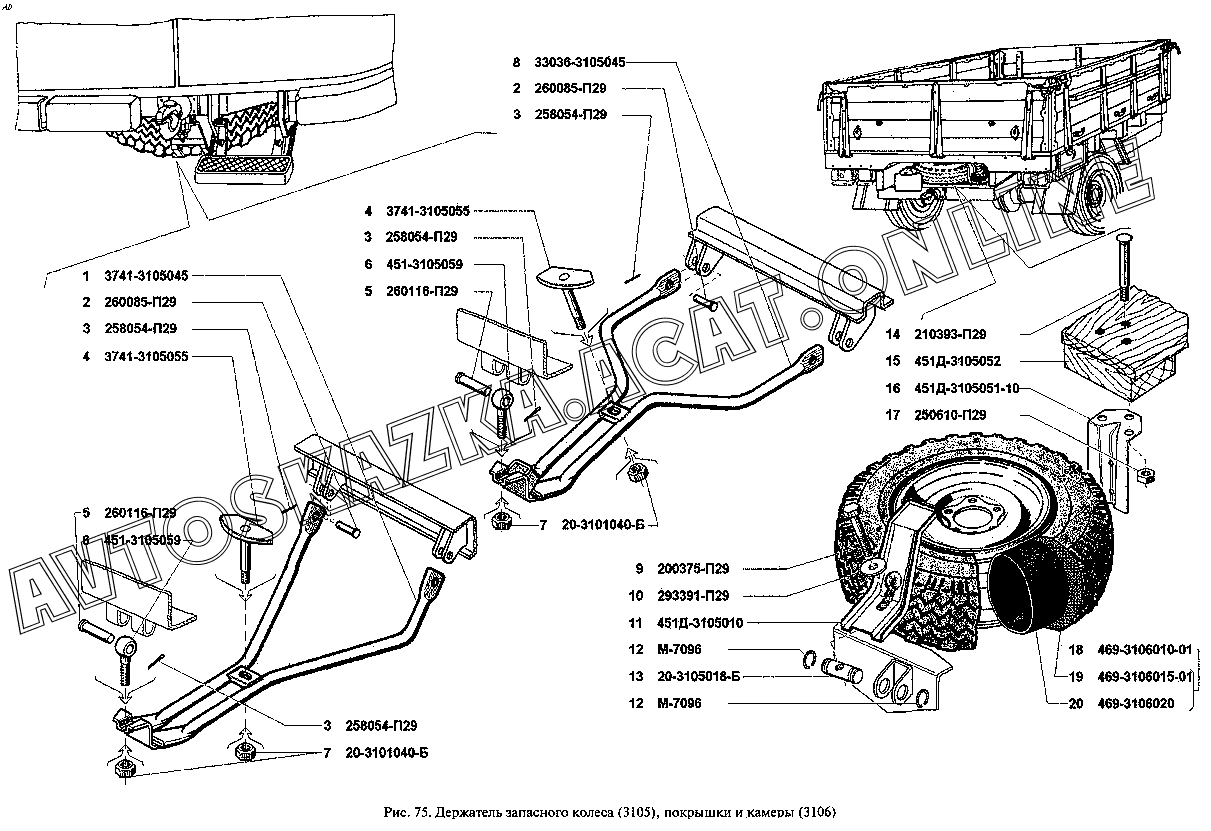 Держатель запасного колеса (3105), покрышки и камеры (3106) УАЗ 3909 (39094, 39095, 39099)
