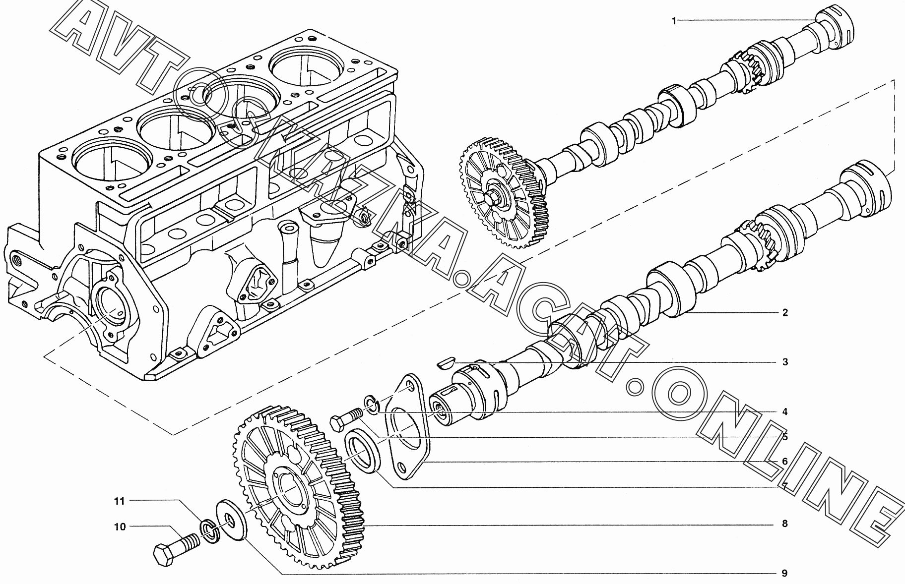 | Название детали: | Вал распределительный с шестерней в сборе |