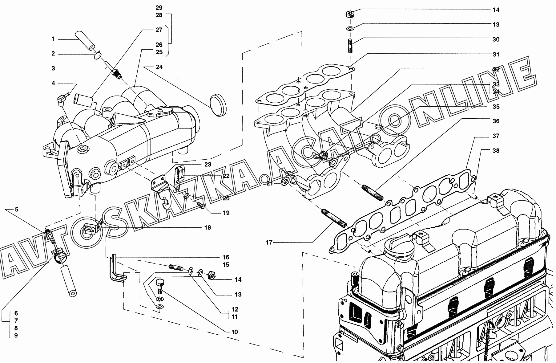 Газопроводы впускной и выпускной УАЗ 37419 (374194 (Euro-2), 374194 (Euro-3), 374195 (Euro-2), 374195 (Euro-3))