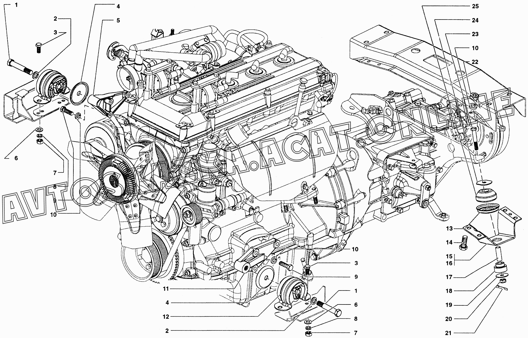 | Название детали: | Двигатель в сборе (полностью укомплектованный для установки на шасси, двигатель) |