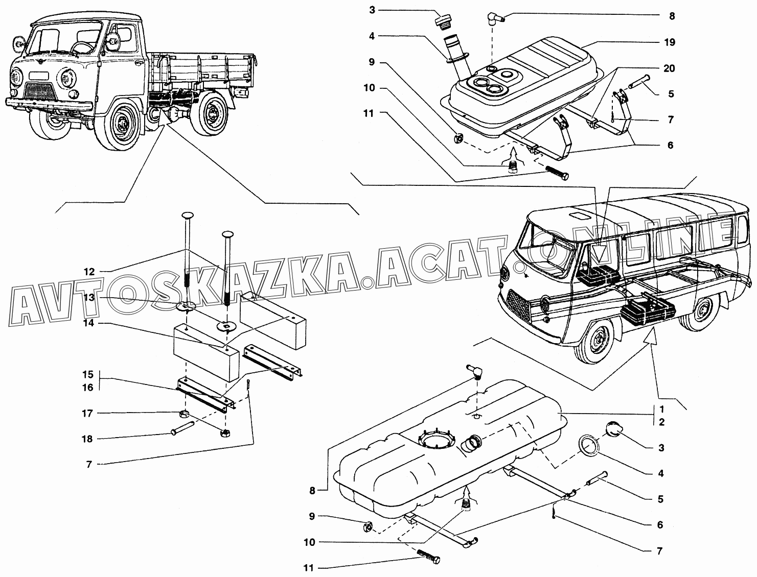 Бак топливный УАЗ 37419 (374194 (Euro-2), 374194 (Euro-3), 374195 (Euro-2), 374195 (Euro-3))