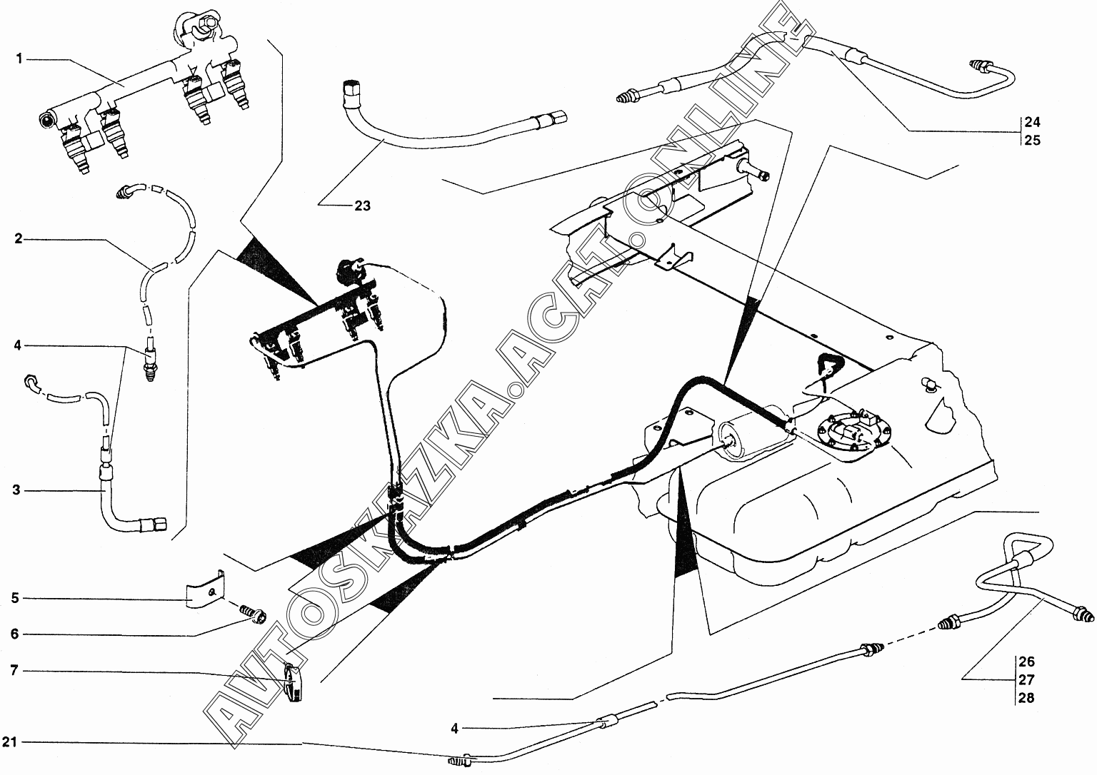 Трубопроводы топливные УАЗ 37419 (374194 (Euro-2), 374194 (Euro-3), 374195 (Euro-2), 374195 (Euro-3))