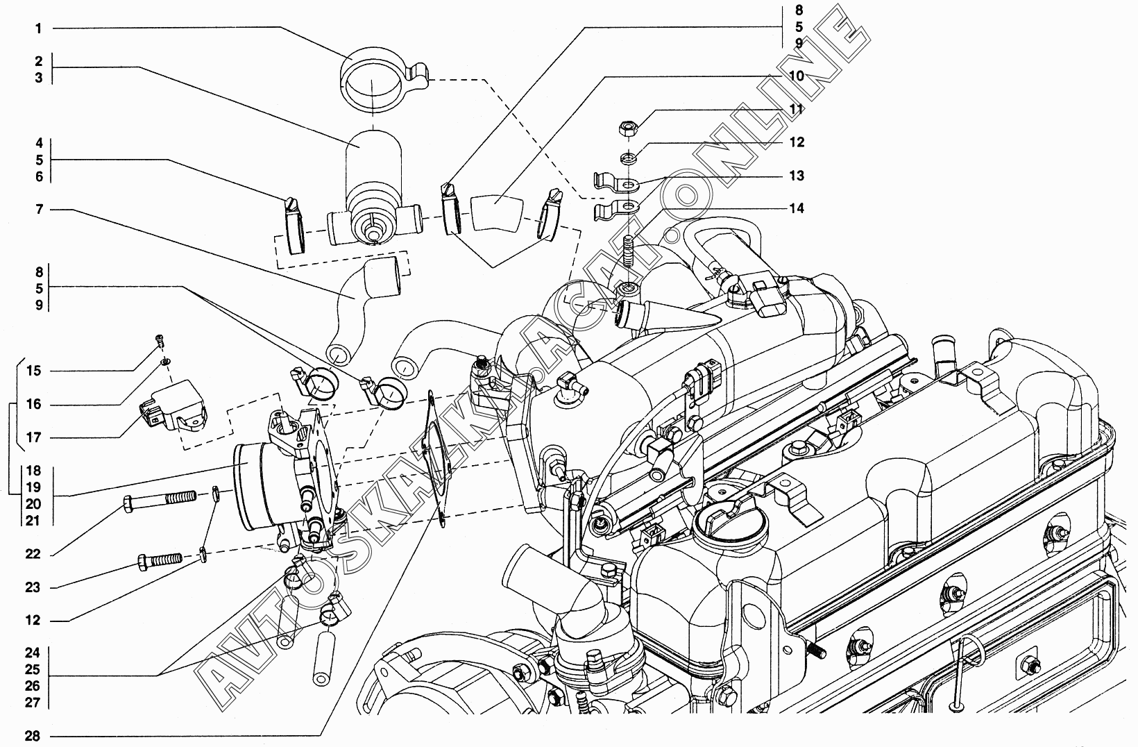 Регулятор подачи дополнительного воздуха, патрубок подачи воздуха для впрыска топлива с электронным управлением УАЗ 37419 (374194 (Euro-2), 374194 (Euro-3), 374195 (Euro-2), 374195 (Euro-3))