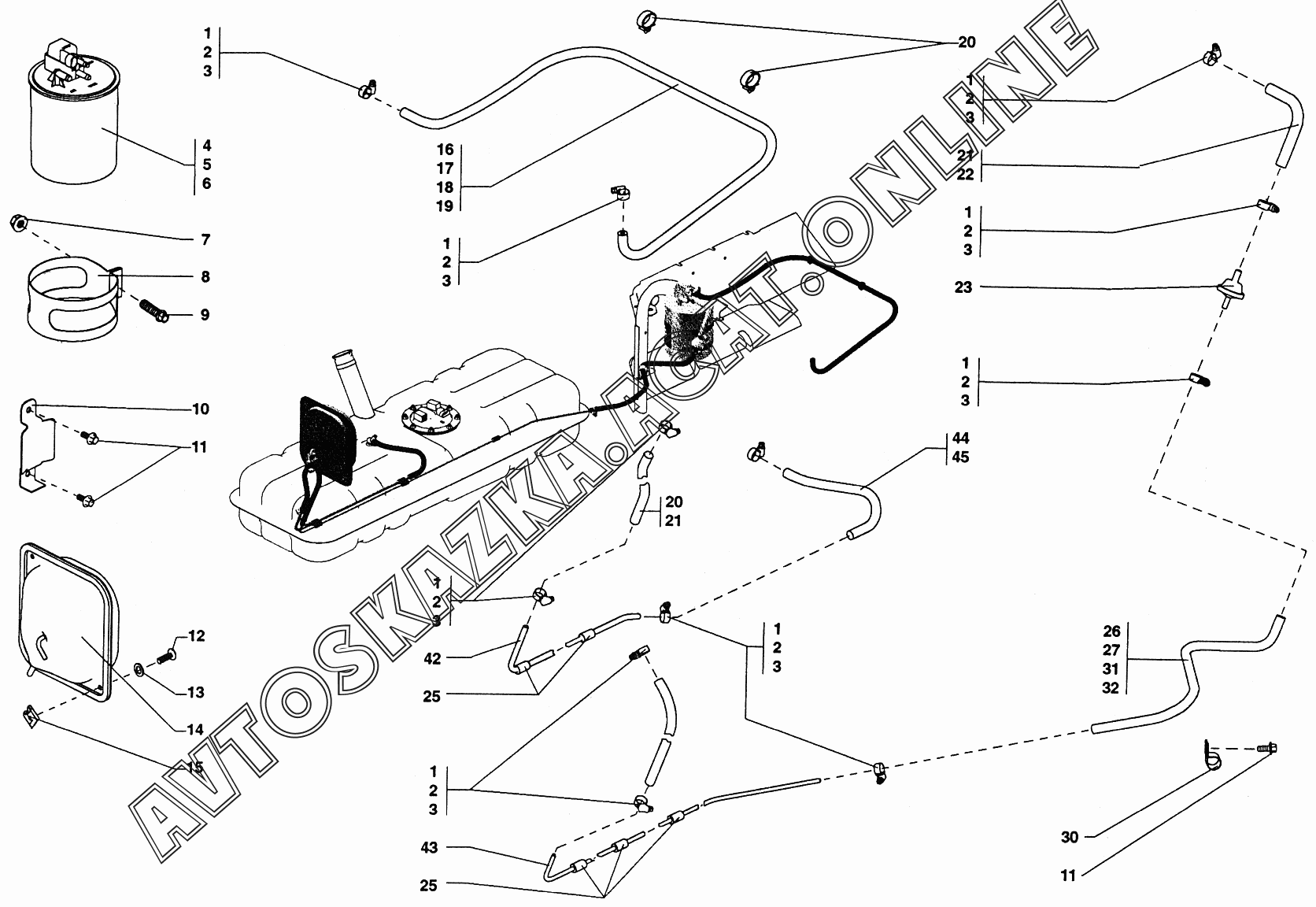Улавливатель и магистрали паров топлива УАЗ 37419 (374194 (Euro-2), 374194 (Euro-3), 374195 (Euro-2), 374195 (Euro-3))