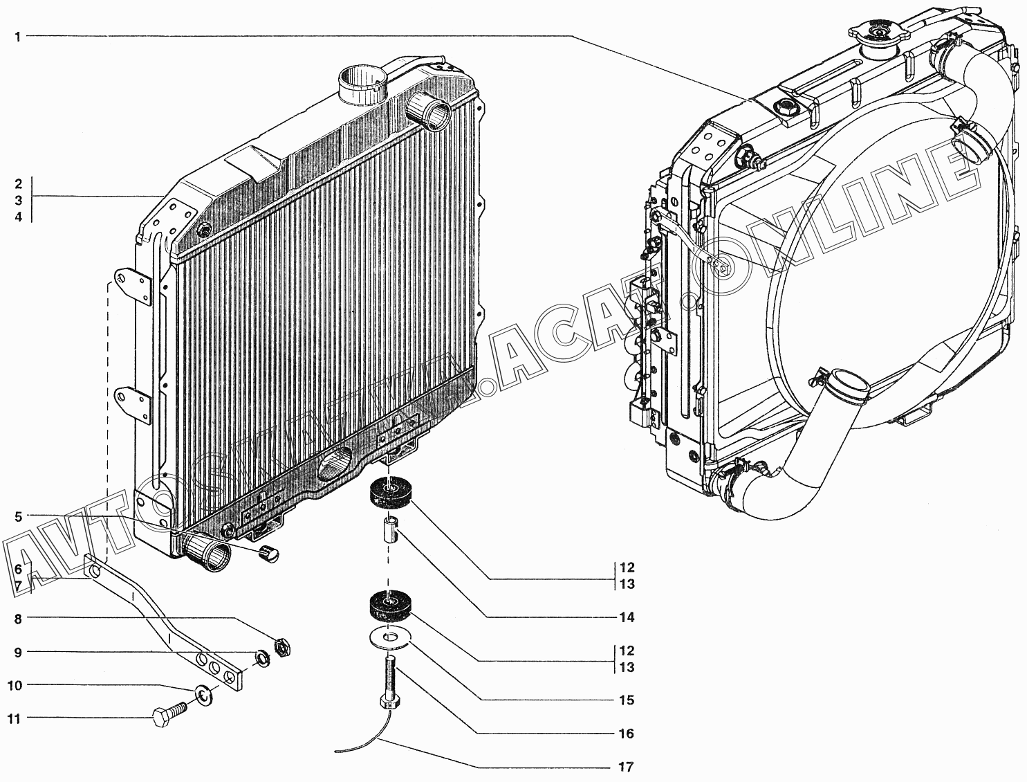 | Название детали: | Радиатор с масляным радиатором и кожухом вентилятора |