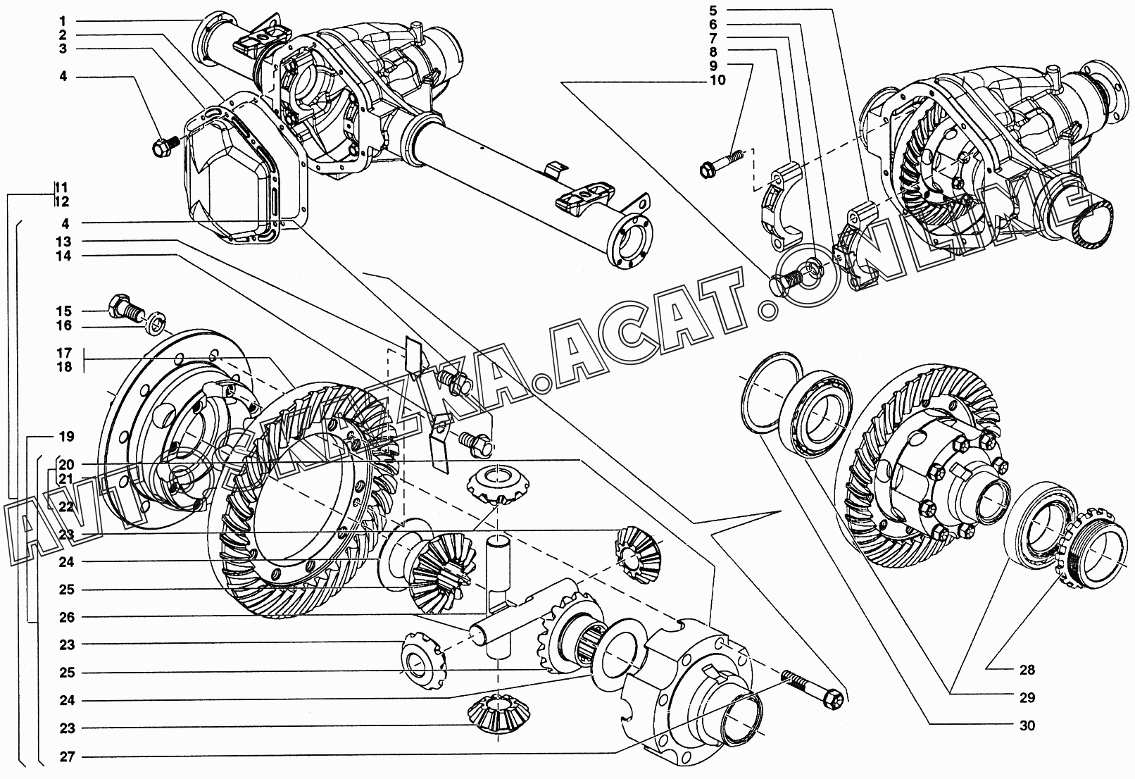 Картер и кожухи полуосей переднего моста, дифференциал переднего моста