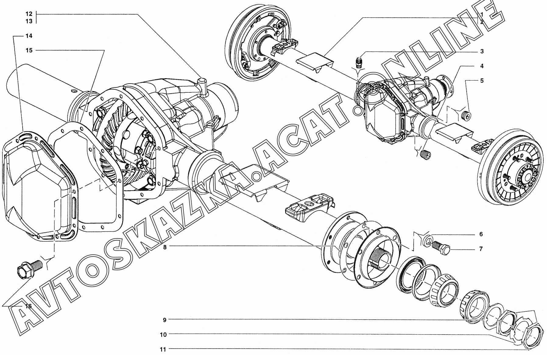 Мост задний ведущий в сборе, картер и кожухи полуосей заднего моста УАЗ 37419 (374194 (Euro-2), 374194 (Euro-3), 374195 (Euro-2), 374195 (Euro-3))