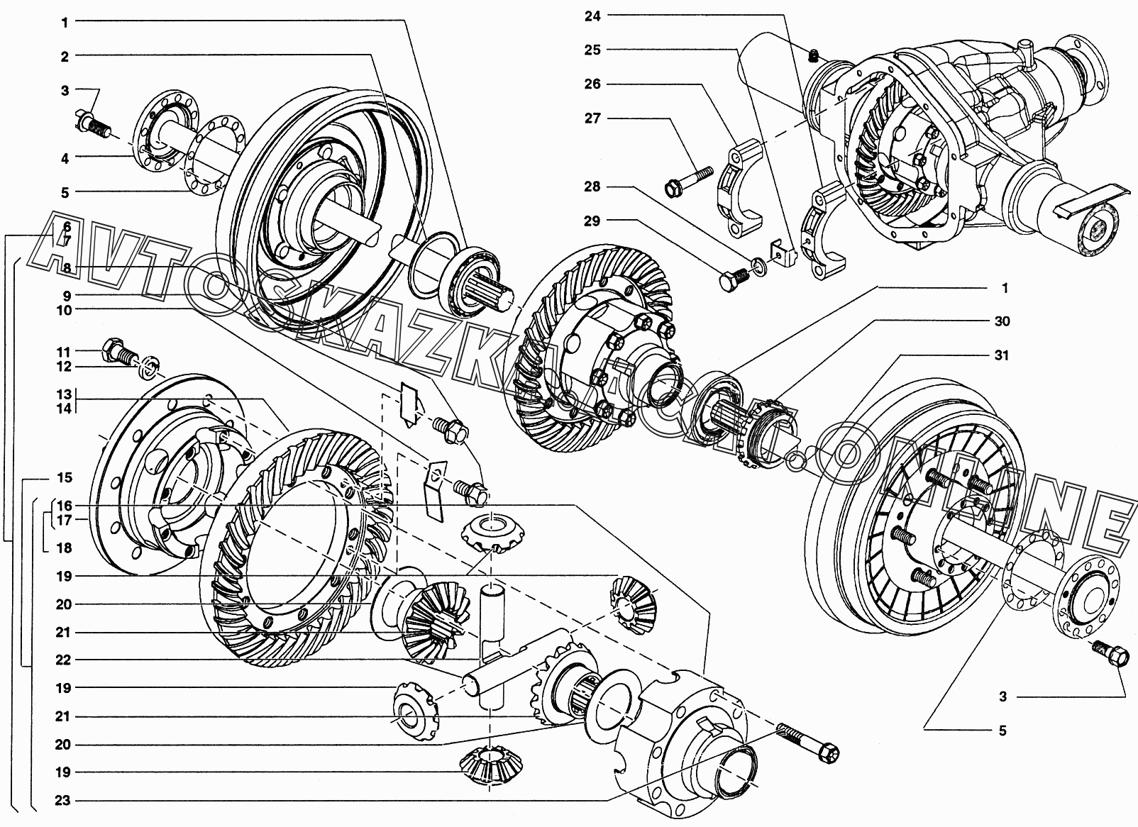 Дифференциал и полуоси заднего моста УАЗ 37419 (374194 (Euro-2), 374194 (Euro-3), 374195 (Euro-2), 374195 (Euro-3))