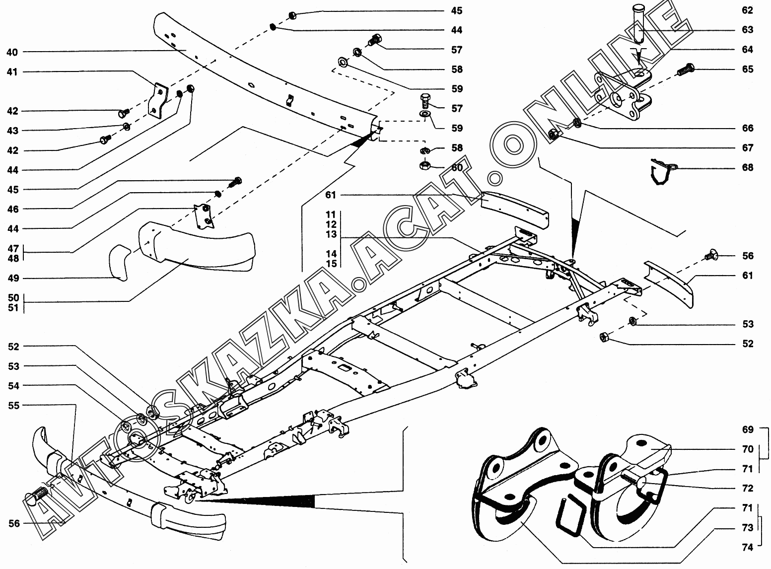 Буфер передний, буфер задний, устройство буксирное крюки буксирные, проушины, кронштейн переднего номерного знака